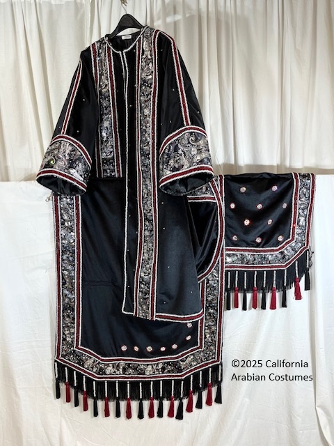 This traditional native costume will look beautiful on any colored Arabian. The robe, however, runs small. It would be perfect for a teenager or a lady with a smaller build.